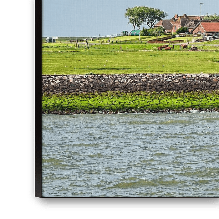 Achetez cette photo Maisons sur l'île de Hallig Hooge dans la mer du Nord par Rico Ködder sur toile, aluminium, ArtFrame ou photographie (encadrée), impression d'art en haute qualité et tout format.
