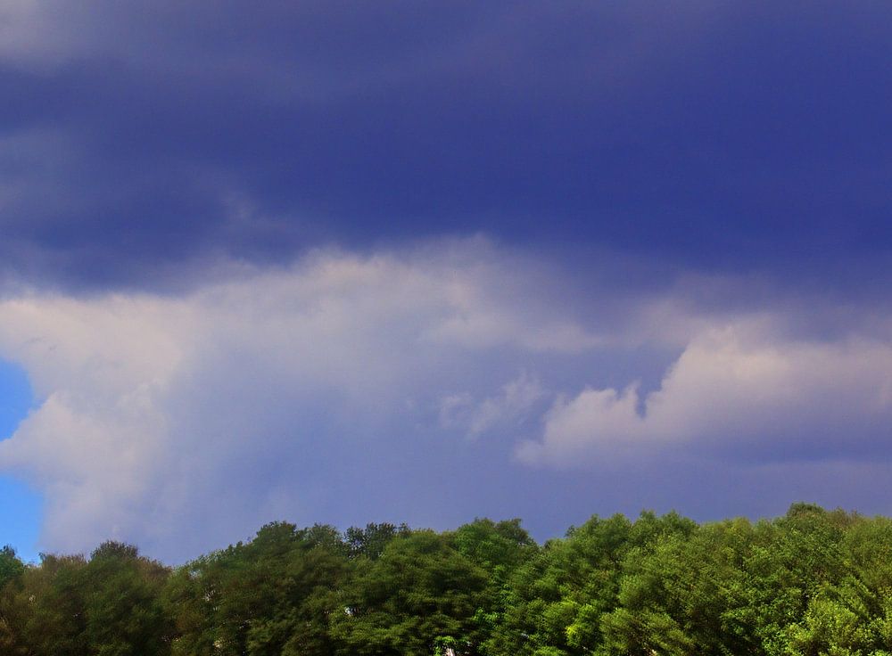 De sombres nuages d'orage au-dessus des chardons de Herten