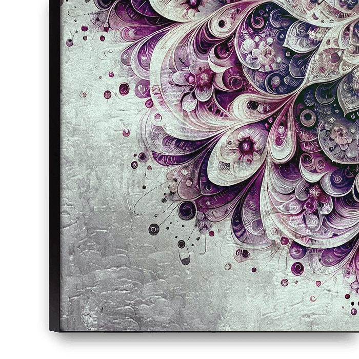 "Fleur d'harmonie" est un mandala aux douces nuances de violet, de mauve et de crème. Le motif floral symétrique dégage une élégance apaisante et invite à profiter d'un moment de calme et de méditation. Cette œuvre d'art est parfaite pour toute pièce qui doit dégager une atmosphère de sérénité et de beauté.