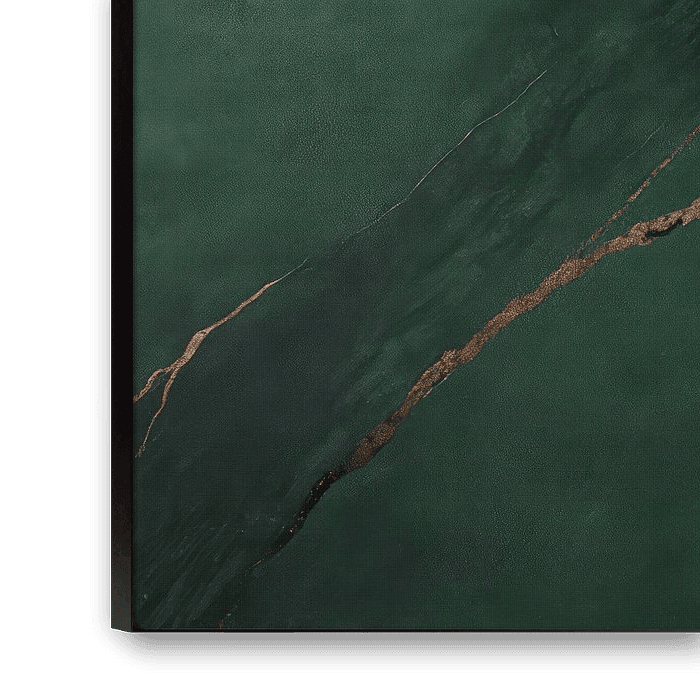 Cette œuvre d'art luxueuse associe une texture de marbre vert jade profond à une veine dorée. La composition respire l'élégance et la richesse, et convient parfaitement à un intérieur chic et moderne. Idéale comme pièce maîtresse dans un salon, une chambre d'hôtel ou un espace de bureau.