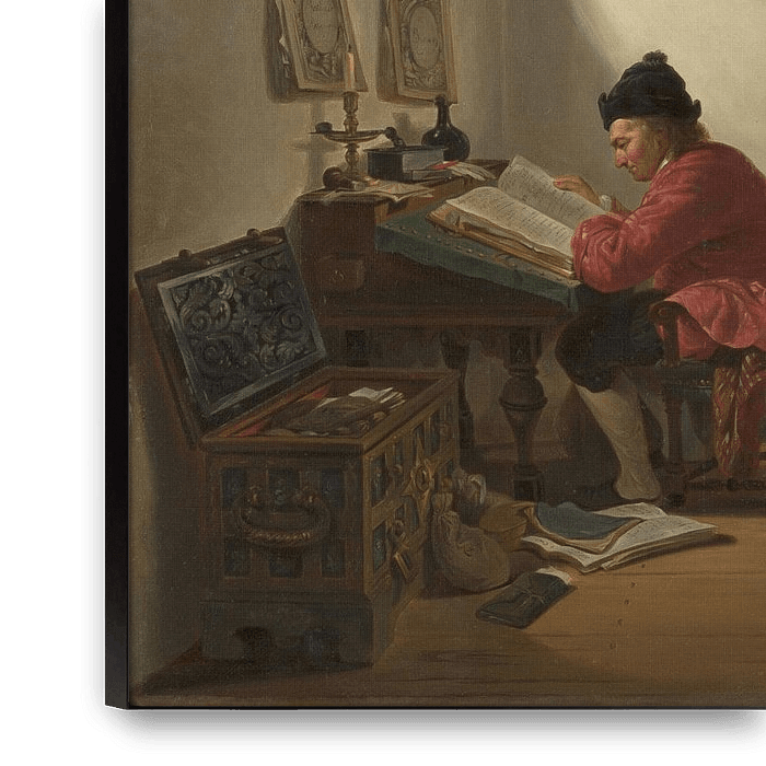 Achetez Marchand à son bureau, Abraham van Strij en tant que reproduction sur toile, aluminium, ArtFrame ou photographie (encadrée), impression d'art en haute qualité et tout format