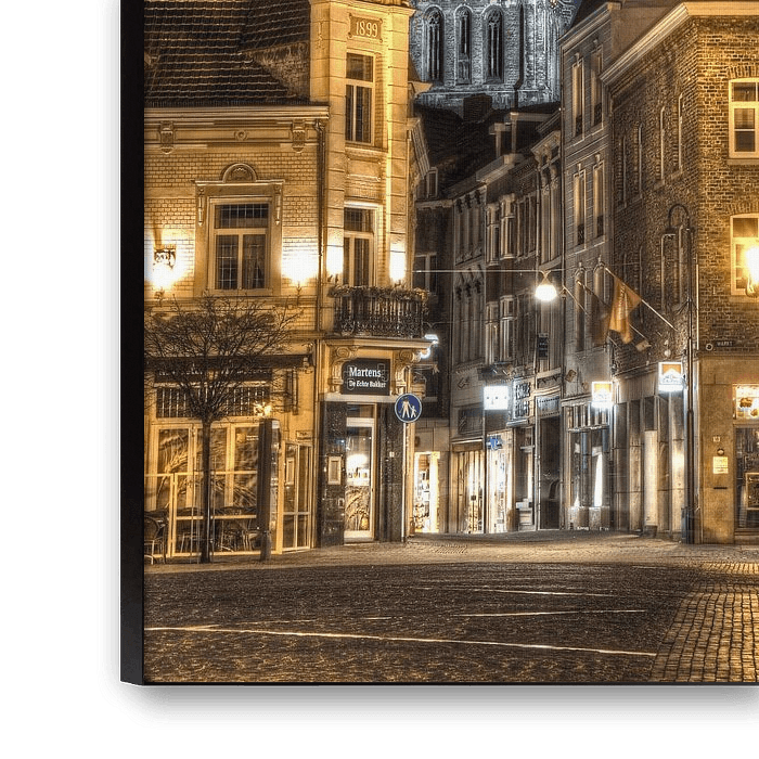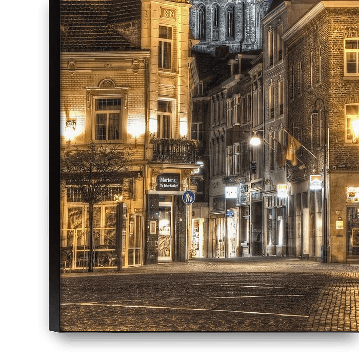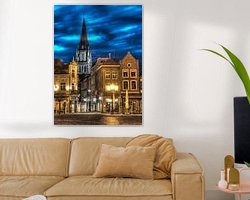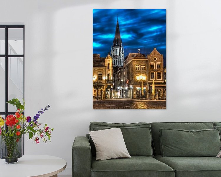 Plan de nuit du marché de Sittard avec vue sur la cathédrale avec vue sur Petruskerk (grande église)