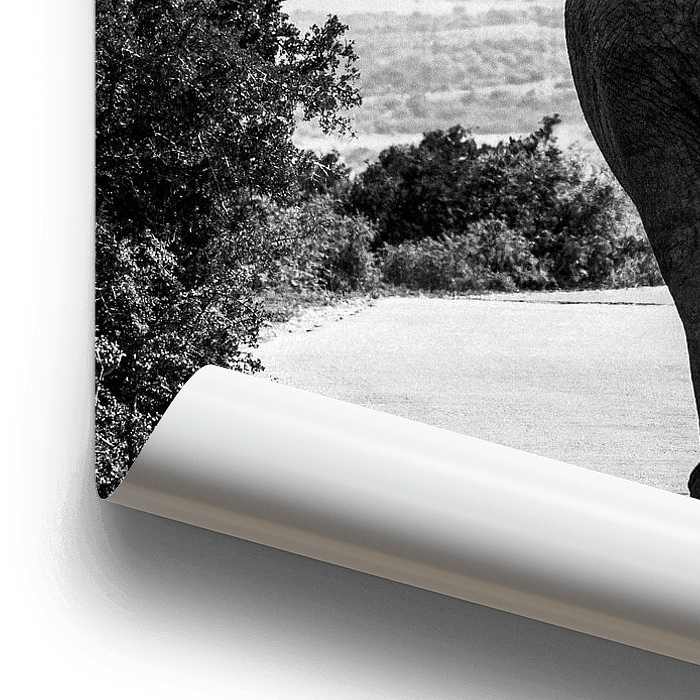 Photo d'un éléphant traversant tranquillement la route. La photo a été prise dans le parc national d'Addo Elephant, en Afrique du Sud.