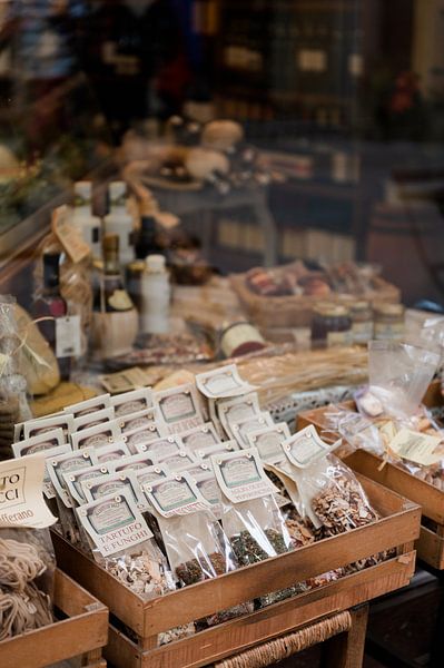 Image d'ambiance d'un marché toscan, avec des épices italiennes.