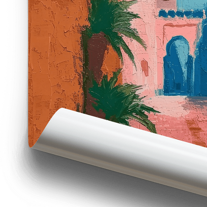 Acheter ce tableau Marrakech colorée, illustration par Studio Allee sur toile, aluminium, ArtFrame ou photographie (encadrée), impression d'art en haute qualité et tout format.