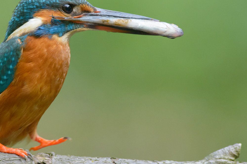 Ce magnifique martin-pêcheur aux couleurs vives avait tout un poisson dans son bec pour ses petits, maintenant presque à l'envol. Cette patte gauche rend cette photo encore un peu plus amusante.