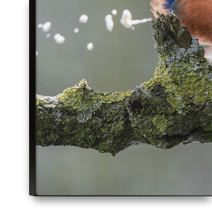 Achetez cette œuvre d'art d'oiseau Martin-pêcheur en train de déféquer par Lies Bakker sur toile, aluminium, ArtFrame ou photographie (encadrée), impression d'art en haute qualité et tout format.