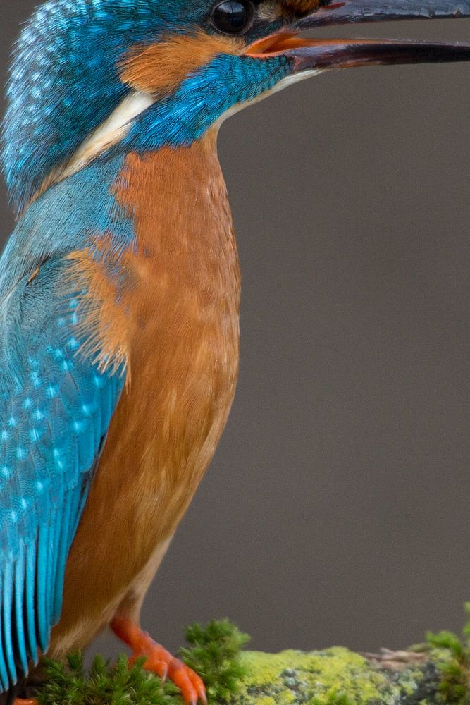 Martin-pêcheur photographié dans la position de lancer en position de menace