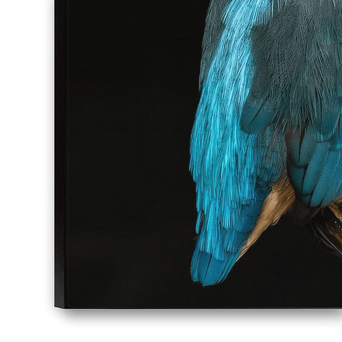 La sous-exposition de la photo l'assombrit. En post-traitement, l'exposition du martin-pêcheur a été corrigée et l'arrière-plan légèrement réduit. Les couleurs de ce bel oiseau ressortent ainsi beaucoup mieux. Les détails du plumage sont également bien visibles.