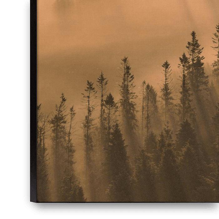 Lorsque les premiers rayons du soleil percent le brouillard matinal, la forêt se transforme en un spectacle enchanteur de lumière et d'ombres. Sur cette photo, de longs rayons dorés tombent en diagonale entre les grands pins, tandis qu'une douce brume enveloppe le paysage. Il en résulte une atmosphère presque féérique, où se mêlent…