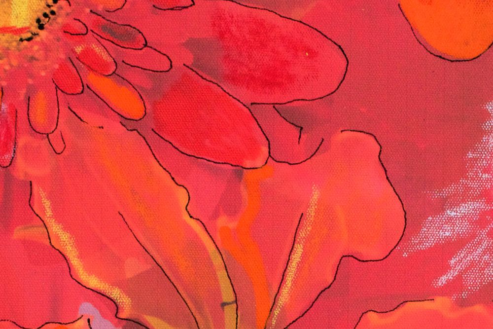Médias mixtes avec différentes images de fleurs dans les couleurs rouge et orange. Plus tard, il a été peint et dessiné.
