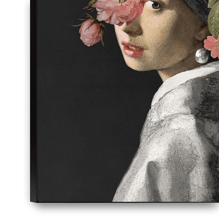 Dans cette version, j'ai associé la jeune fille aux fleurs de la nature morte "Roses dans un vase de verre" peinte vers 1640 par le peintre néerlandais Jacob van Hulsdonck.
