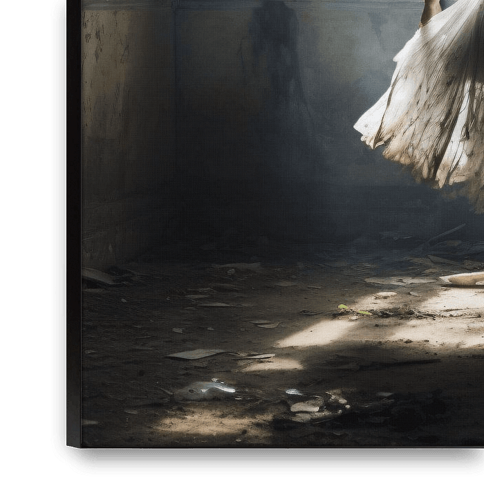 Dans les couloirs oubliés d'un château en ruine, une ballerine marche, ses mouvements gracieux étant une ode à la gloire passée. Son regard croise des fenêtres brisées et des murs en ruine, dans une harmonie tranquille entre raffinement et décadence. Chaque pirouette raconte l'histoire d'un lieu autrefois majestueux, aujourd'hui plongé…