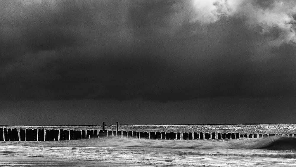 Même avec un ciel menaçant, vous pouvez profiter de la mer, des nuages, de la mer, des vagues. Sentez-vous la menace et le vent ?...