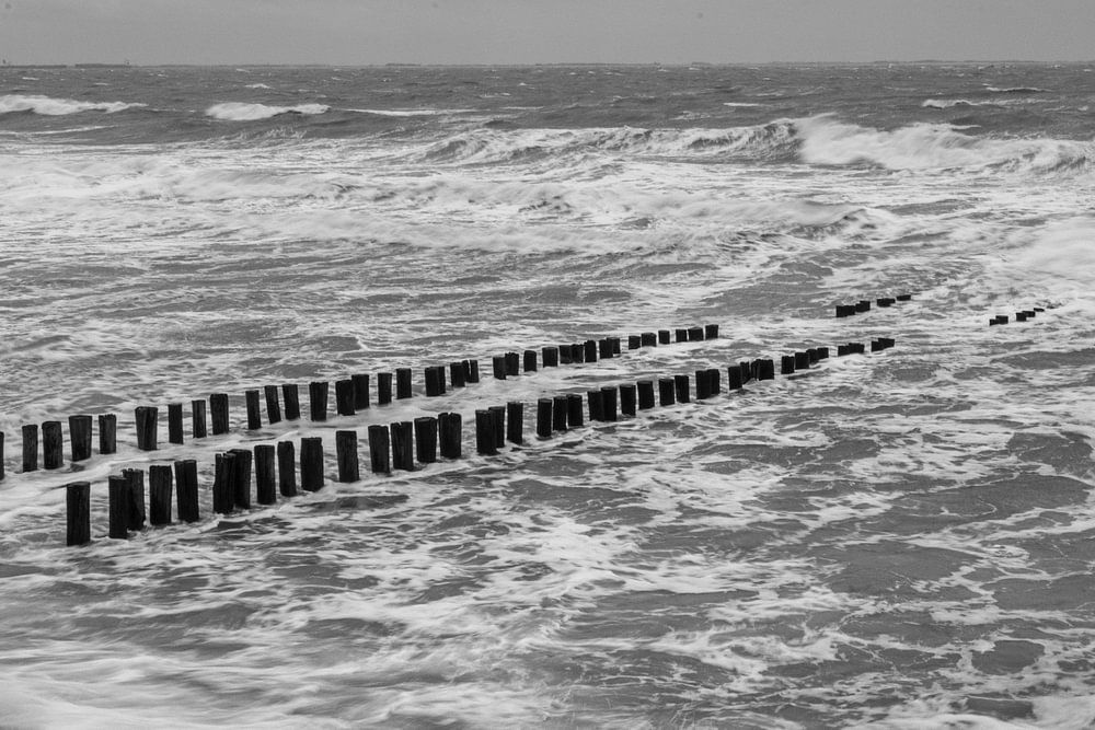 Une mer déchaînée lors de la tempête de décembre 2024 sur la côte de Zoutelande. L'eau s'abat sur le rivage, les brise-lames brisant la force. Il n'y a rien de tel que de sentir le vent dans ses cheveux, de profiter des rafales turbulentes et de l'air salé de la mer.