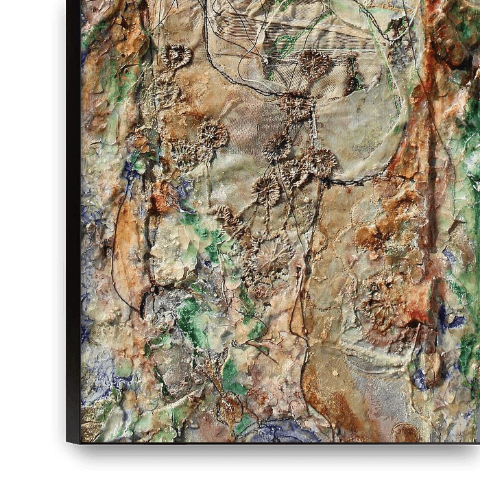 Une œuvre de mère & enfant. Grâce à l'utilisation de nombreux matériaux différents, l'œuvre a l'apparence d'une sculpture. L'œuvre a une charge émotionnelle et avec ses formes organiques, l'œuvre a l'atmosphère de la nature.
