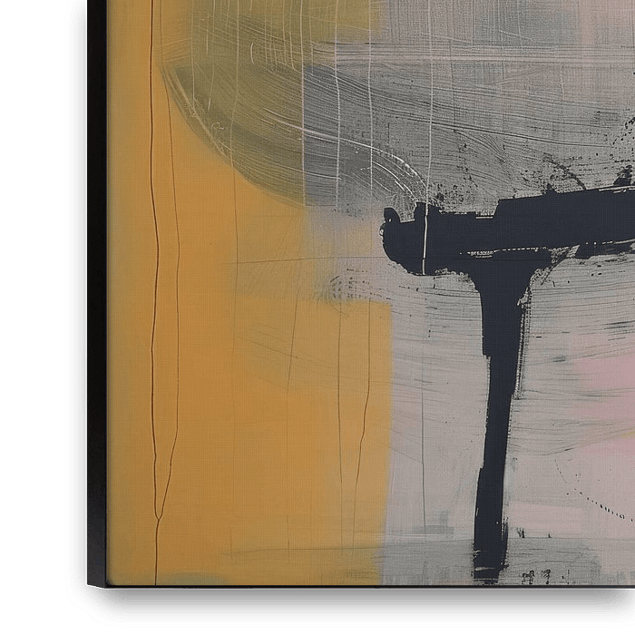 Minimalisme, modernité et abstraction en jaune, noir et une touche de rose. Un véritable accroche-regard pour votre intérieur ! Choisissez la taille et le matériau de cette œuvre.