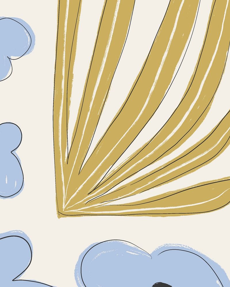 Illustration moderne de formes botaniques. Inspiré par les œuvres d'Henri Matisse. Bleu clair, jaune ocre, noir sur un fond beige clair.