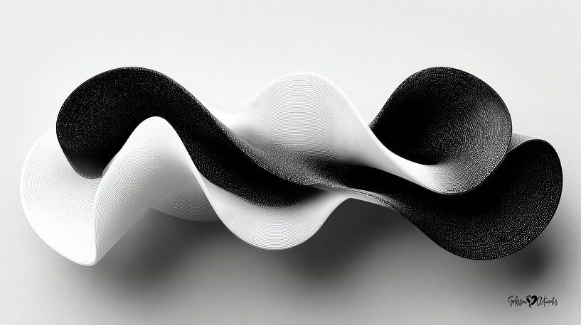 Monochrome Flow – een unieke serie abstracte zwart-wit kunstwerken waarin vorm, beweging en contrast elkaar in perfecte balans ontmoeten.