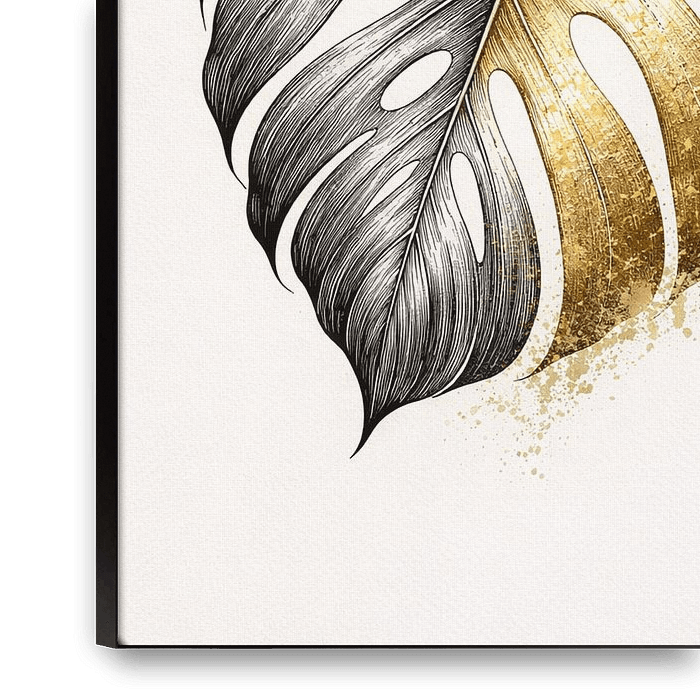 Une illustration raffinée et ludique d'une feuille de Monstera, partagée entre des détails délicats à l'encre fine et une texture de feuille vert-doré audacieuse et vieillie. Cette œuvre d'art allie l'élégance botanique à un humour subtil, célébrant la beauté - et la personnalité « exigeante » - des plantes d'intérieur tant appréciées.…