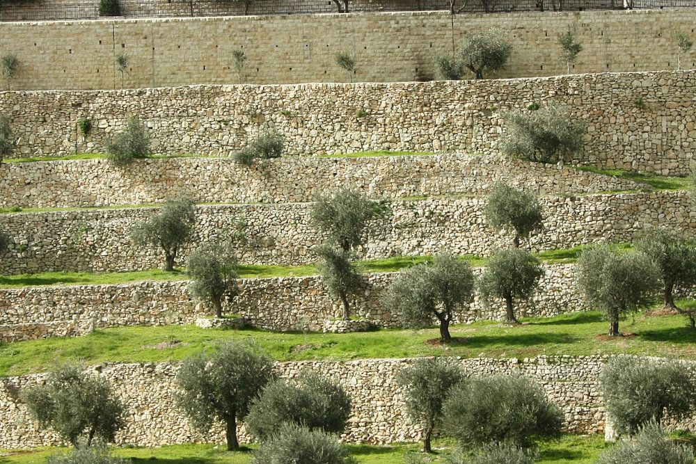 Mont du Temple, Jérusalem Israël, murs anciens, herbe verte, oliviers