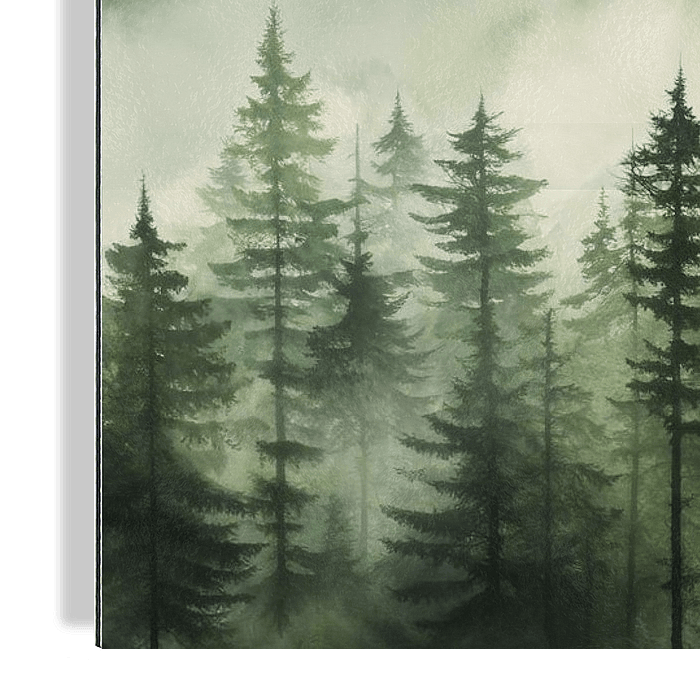 Cette œuvre d'art sereine et impressionnante représente un paysage brumeux et verdoyant, capturé dans le style délicat et fluide de l'aquarelle.