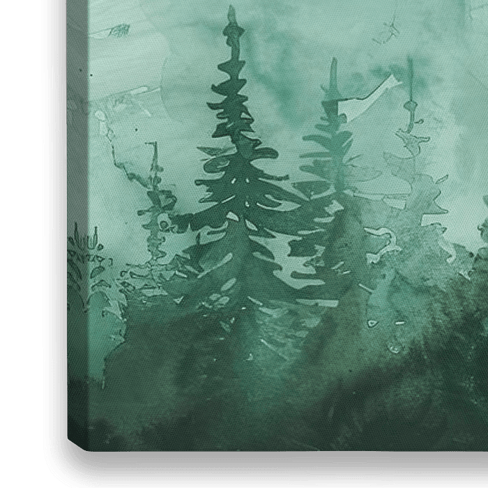 Cette aquarelle capture l'atmosphère calme et rêveuse d'un paysage de montagne verdoyant enveloppé de brume.