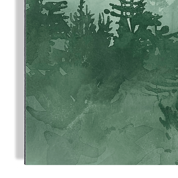 Les couleurs vont du vert profond au premier plan à des tons plus clairs au fur et à mesure que l'œil s'enfonce dans la forêt. Les arbres semblent se fondre dans la brume, ce qui ajoute à l'impression…
