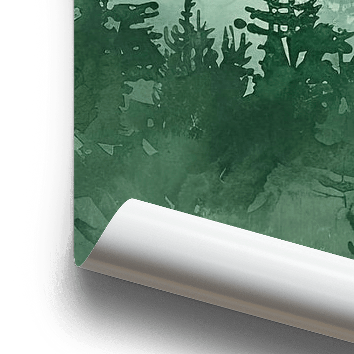 Les couleurs vont du vert profond au premier plan à des tons plus clairs au fur et à mesure que l'œil s'enfonce dans la forêt. Les arbres semblent se fondre dans la brume, ce qui ajoute à l'impression…