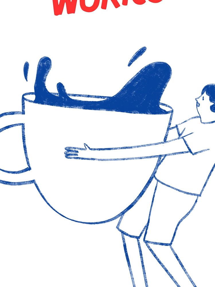 Combinaison humoristique d'un texte de style rétro et d'une illustration amusante pour les buveurs de café