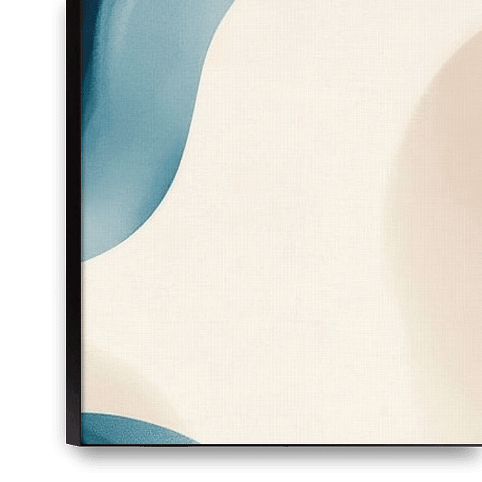 Un doux dialogue se déploie entre des formes profondes d'un bleu nuit et un fond chaud et crémeux. Cette composition harmonieuse rayonne d'une élégance intemporelle et transforme chaque pièce. Idéal pour le salon, où il devient le centre de l'attention et incarne le calme ainsi que le style.