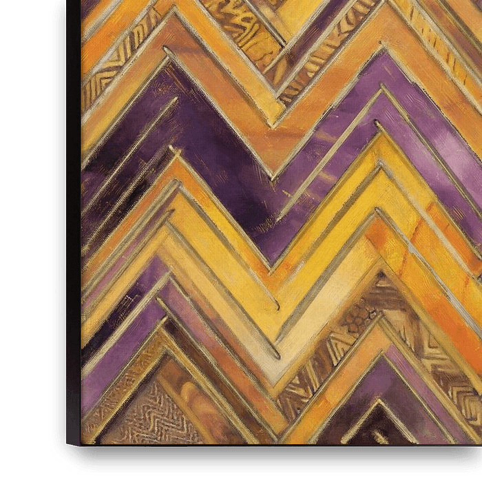 Achetez cette œuvre d'art Art déco Motifs en zigzag en violet et jaune par Whale & Sons sur toile, aluminium, ArtFrame ou photographie (encadrée), impression d'art en haute qualité et tout format.