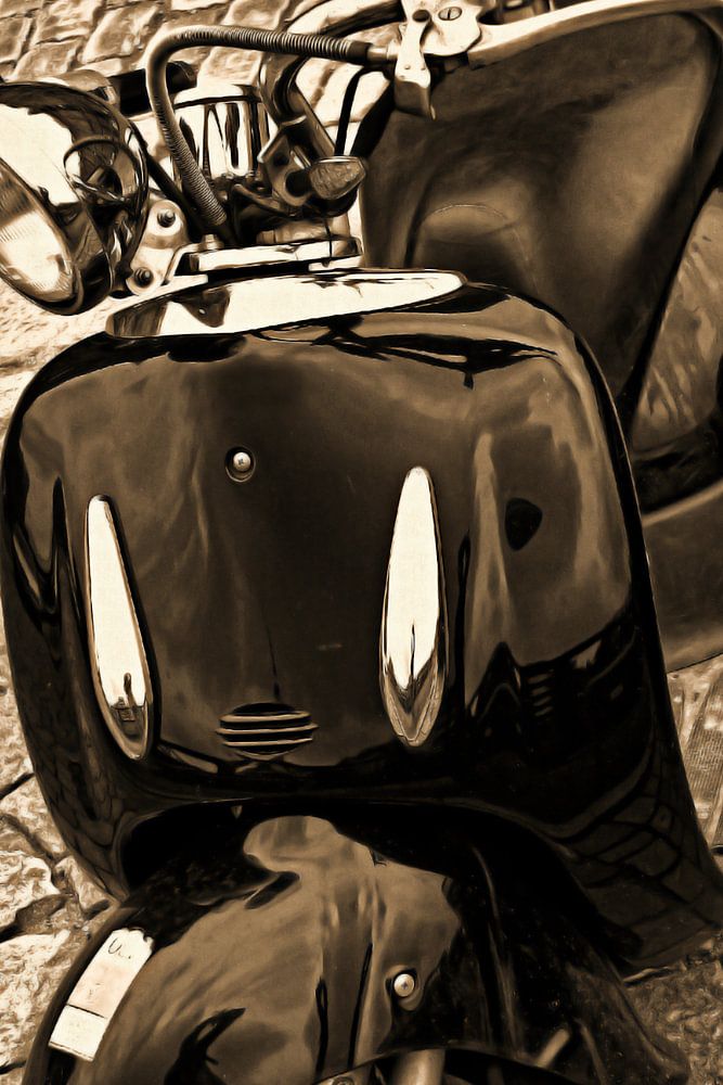 Fotografie eines Motorroller in Hamburg Speicherstadt. in Sepia umgewandelt.