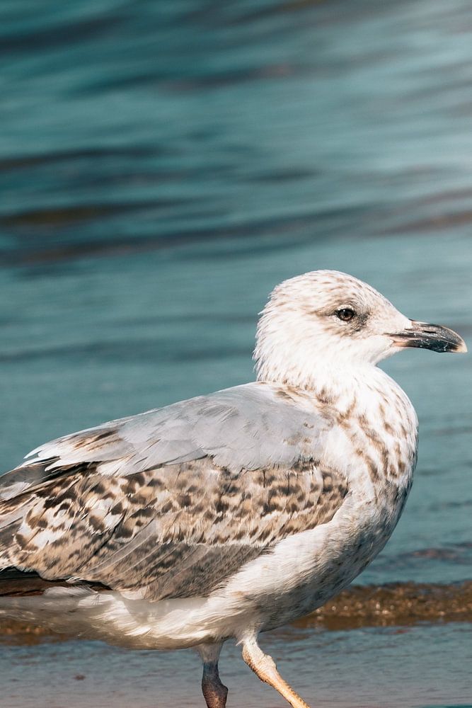 Une élégante mouette Tres est posée sur la plage de Scheveningen. Entourée par le sable orange et les eaux bleues de la mer du Nord. Cette photo apporte calme, élégance et un regard ensoleillé. Pour les amoureux de la nature et de la plage.