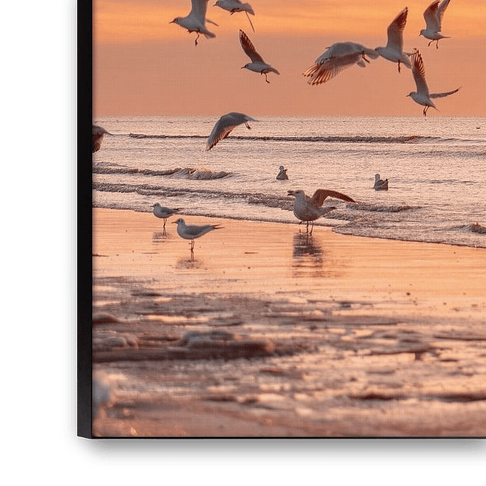 Achetez cette photo Mouettes en vol au coucher du soleil par Yanuschka | Fotografie Noordwijk sur toile, aluminium, ArtFrame ou photographie (encadrée), impression d'art en haute qualité et tout format.