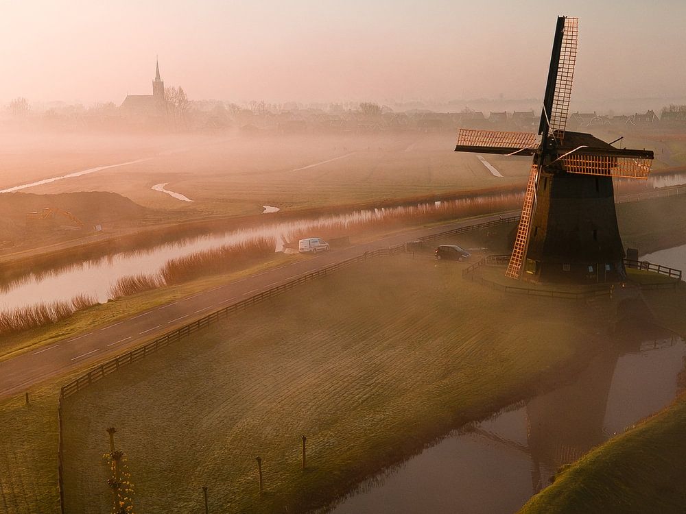 Moulin hollandais dans le brouillard par Jurrie Renskers