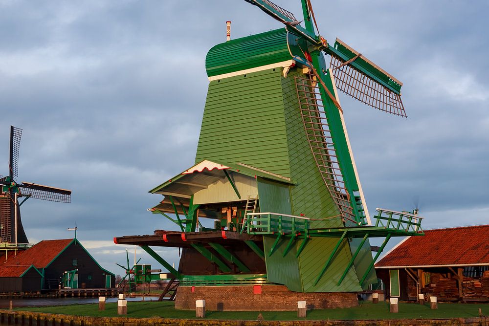 Photo prise à Zaanse Schans. Le ciel était très beau et grâce à la vitesse d'obturation plus lente, l'eau est belle et plate. Les trois moulins à vent forment une belle ligne jusqu'au moulin avant qui est le centre de l'image.