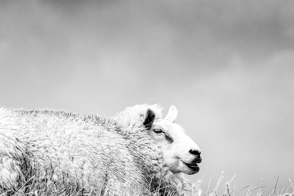 L'un des nombreux moutons texels vivant à Texel. Dans le vent sur la digue.