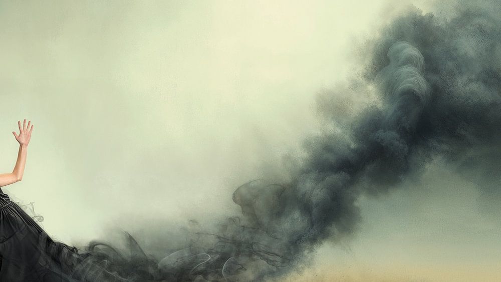 Whispers in the Wind explore la frontière entre le pouvoir et l'impermanence. Cette œuvre est une réinterprétation d'un projet antérieur, unissant le mouvement élégant d'une danseuse à la qualité éthérée de la fumée. La robe, qui se dissout progressivement dans un voile de fumée noire, crée un contraste dramatique avec le champ doux et doré et l'air raréfié.