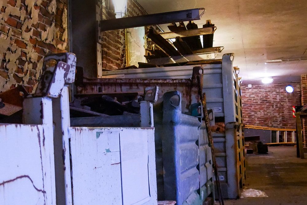 Photo de bas niveau prise dans le hangar de maintenance du musée ferroviaire d'Utrecht