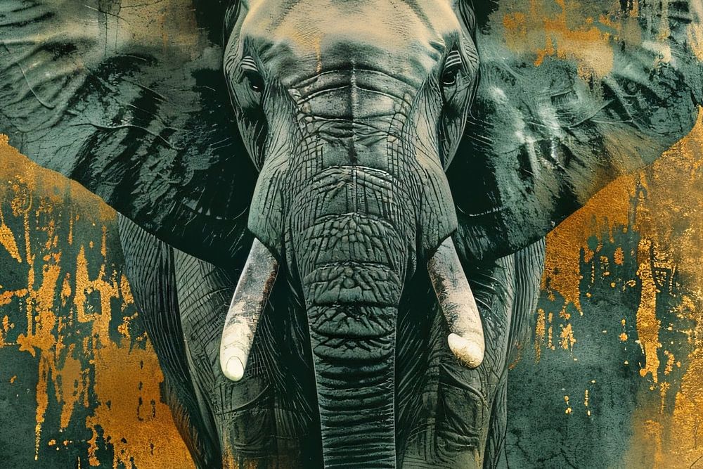 Cette œuvre d'art unique capture la majesté d'un éléphant dans un style abstrait et moderne. Le contraste des tons verts profonds et des accents dorés fait de cette pièce un véritable accroche-regard, parfait pour un bureau ou une chambre à coucher. Les éléments rustiques ajoutent une touche de mystère, ce qui en fait non seulement une pièce décorative, mais aussi un sujet de conversation. Laissez cette œuvre d'art impressionnante transformer votre espace et ajouter une touche de beauté sauvage et de flair artistique à votre intérieur.