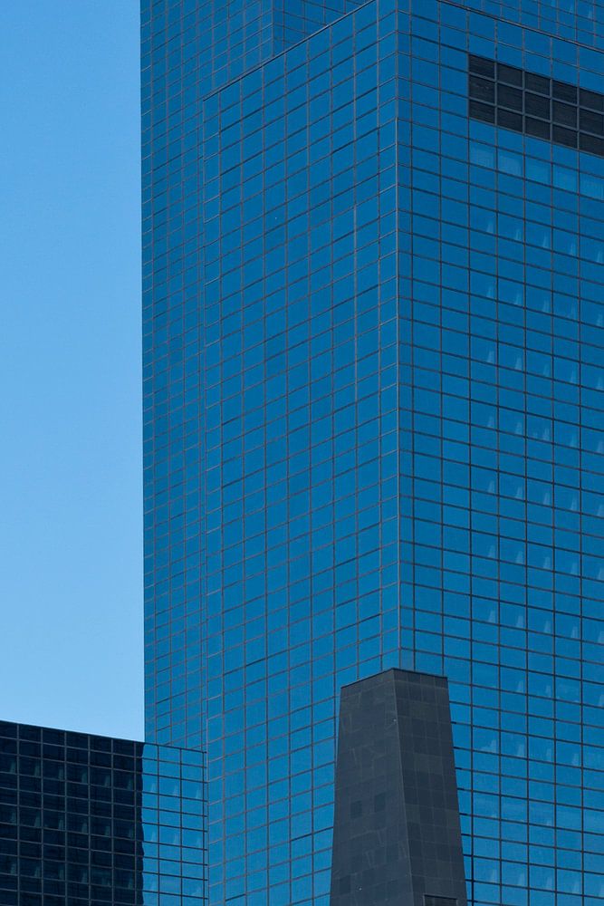 Le bâtiment de la Nationale Nederlanden à Rotterdam est très photogénique. Il m'a inspiré plusieurs photos de détail. C'est l'un d'entre eux. Le bâtiment doit sa belle couleur bleue à la réflexion du ciel bleu acier.
