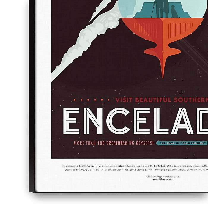 Acheter ce art numérique NASA JPL Tourisme spatial Encelade par Steven Kingsbury sur toile, aluminium, ArtFrame ou photographie (encadrée), impression d'art en haute définition et tout type de format.
