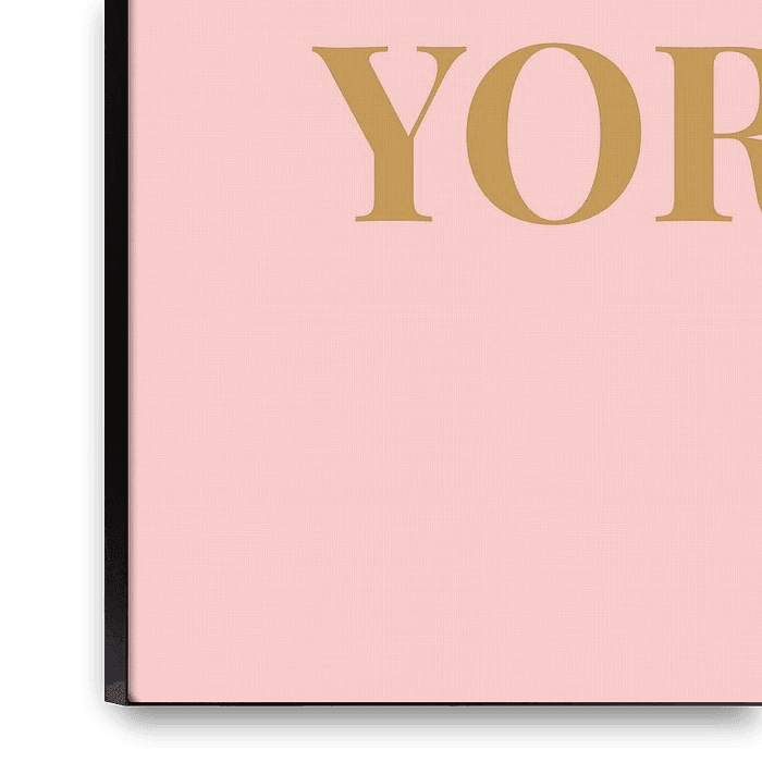 Affiche typographique intemporelle "NEW YORK" sur fond rose et texte doré