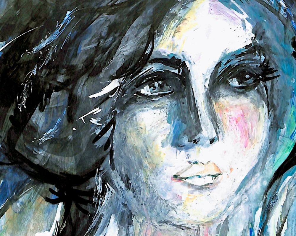 Portrait d'une jeune femme dessiné avec des feutres. Les marqueurs sont ensuite travaillés avec de l'eau, ce qui fait couler l'encre et donne un effet d'aquarelle.