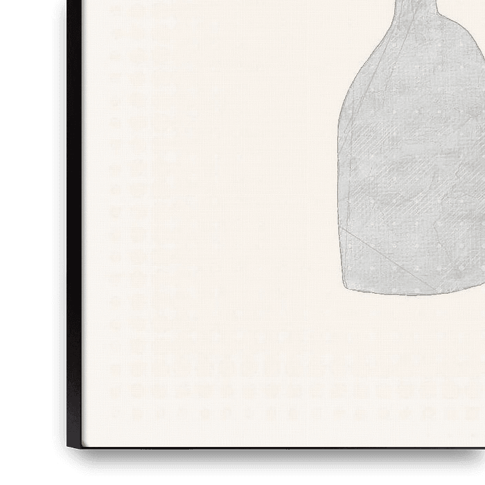 De simples formes dessinées à la main forment une nature morte avec des bouteilles et une fleur dans un pot.