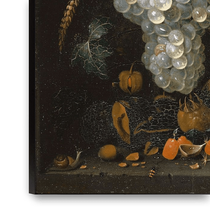 Achetez Nature morte avec raisins et fruits dans une niche, Abraham Mignon en tant que reproduction sur toile, aluminium, ArtFrame ou photographie (encadrée), impression d'art en haute qualité et tout format