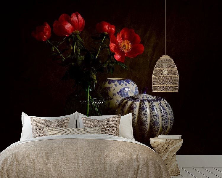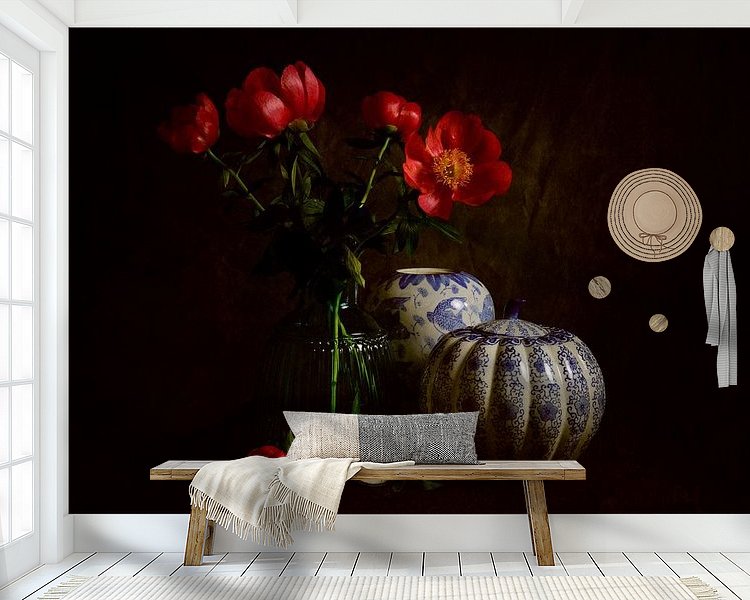 Achetez ce nature morte Nature morte avec une pivoine par Adriaan Westra sur toile, aluminium, ArtFrame ou photographie (encadrée), impression d'art en haute qualité et tout format.