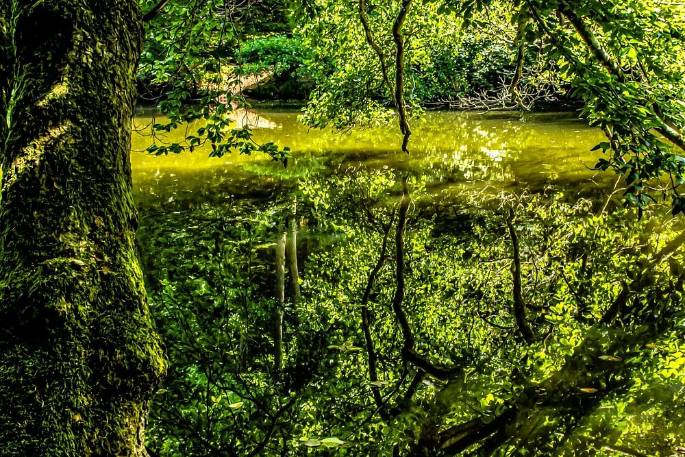 Nature verte Reflet de l'arbre et des branches dans le lac en été au Blechhammer à Kaiserslautern Allemagne