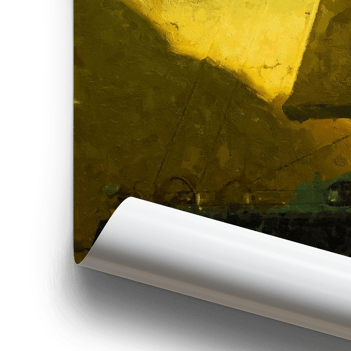 La ballerine, élégante et gracieuse sur ses pointes, se tient sur le pont d'un voilier glissant sur l'eau. Ses poses reflètent les vagues et le vent, ce qui donne l'impression qu'elle ne fait qu'un avec son environnement. La palette de couleurs chaudes du tableau, avec ses tons de terre et ses contrastes subtils, donne vie à l'atmosphère du soleil couchant.